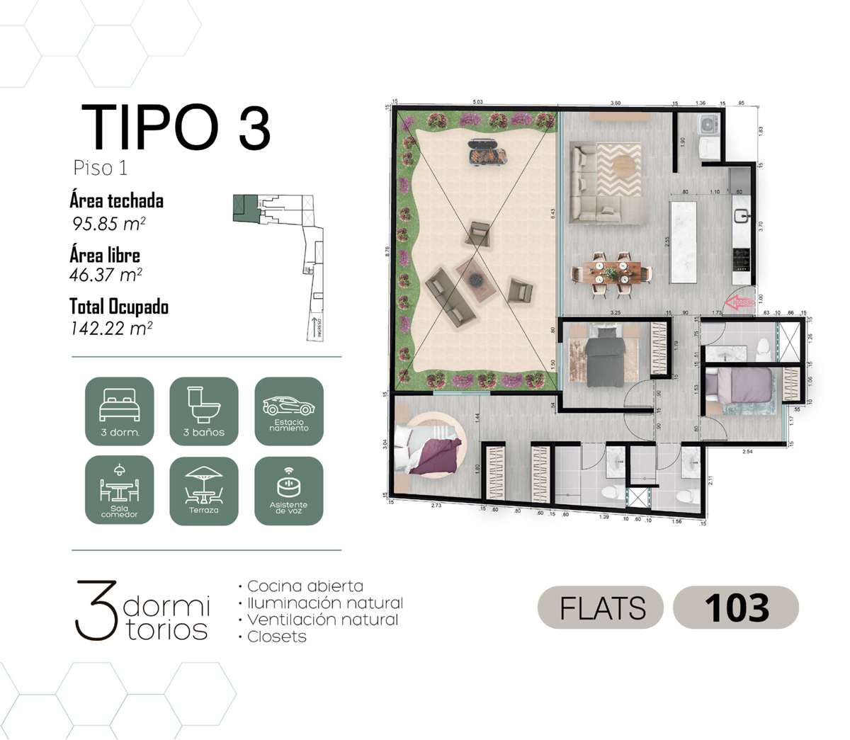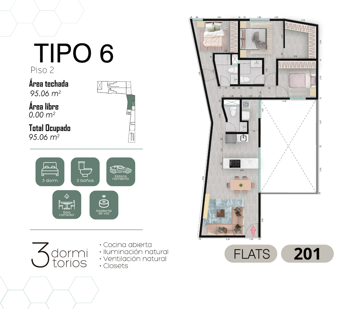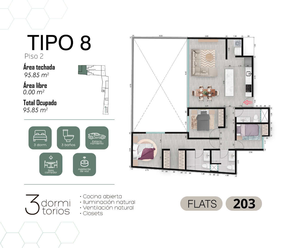 Departamentos de diferentes tamaños. Distribuciones pensadas para familias, parejas e inversionistas. Espacios bien distribuidos, con áreas pensadas para la vida cotidiana.